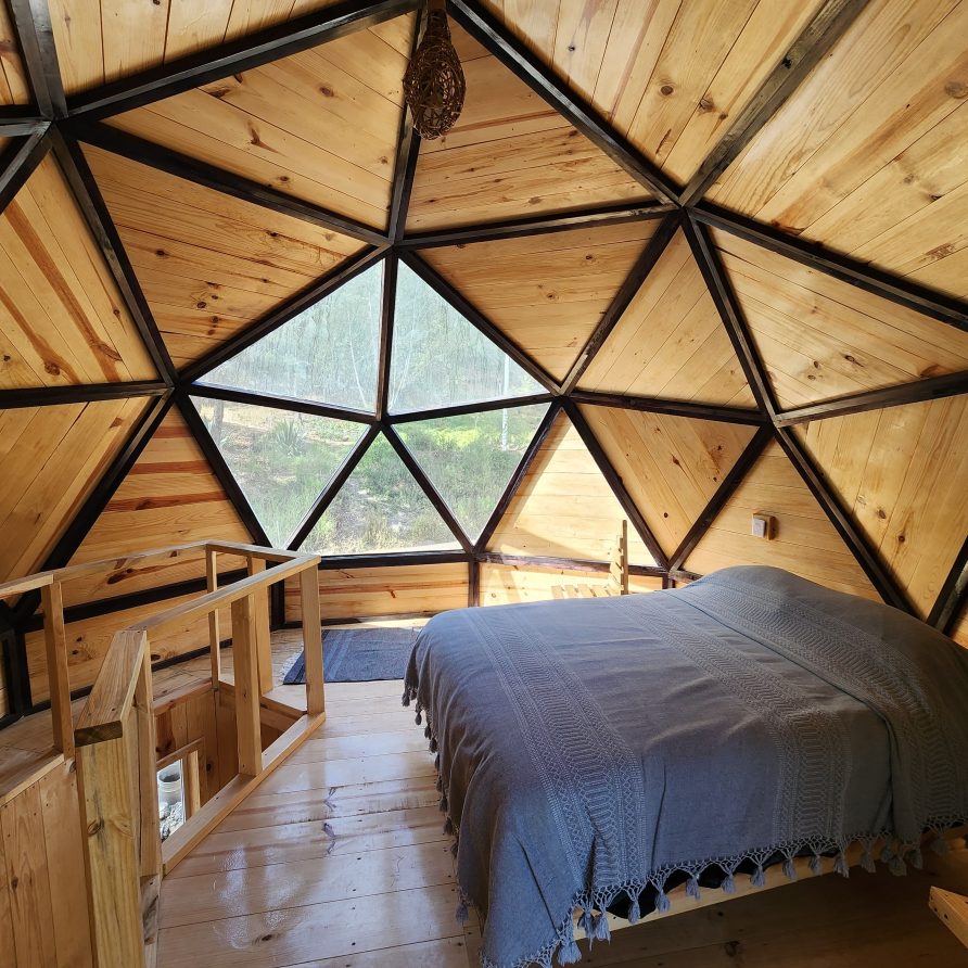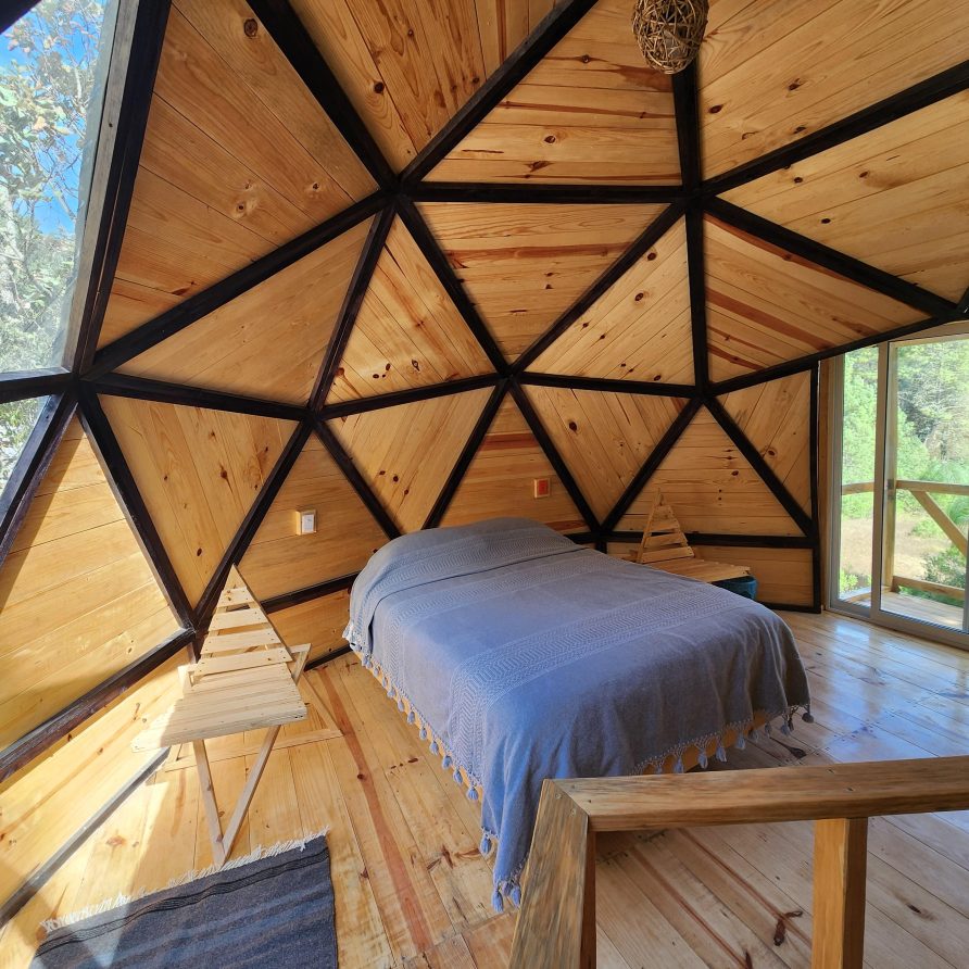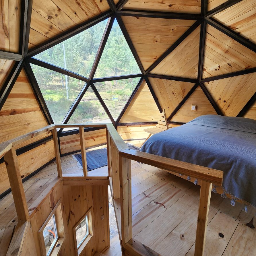 La habitación cuenta con 2 camas matrimoniales, recubierta de bambú, chimenea, baño privado con agua caliente, acceso a todas las terrazas de la cumbre, clave wifi, papel, toallas, jabón, un juego de sabana, 3 cobertores